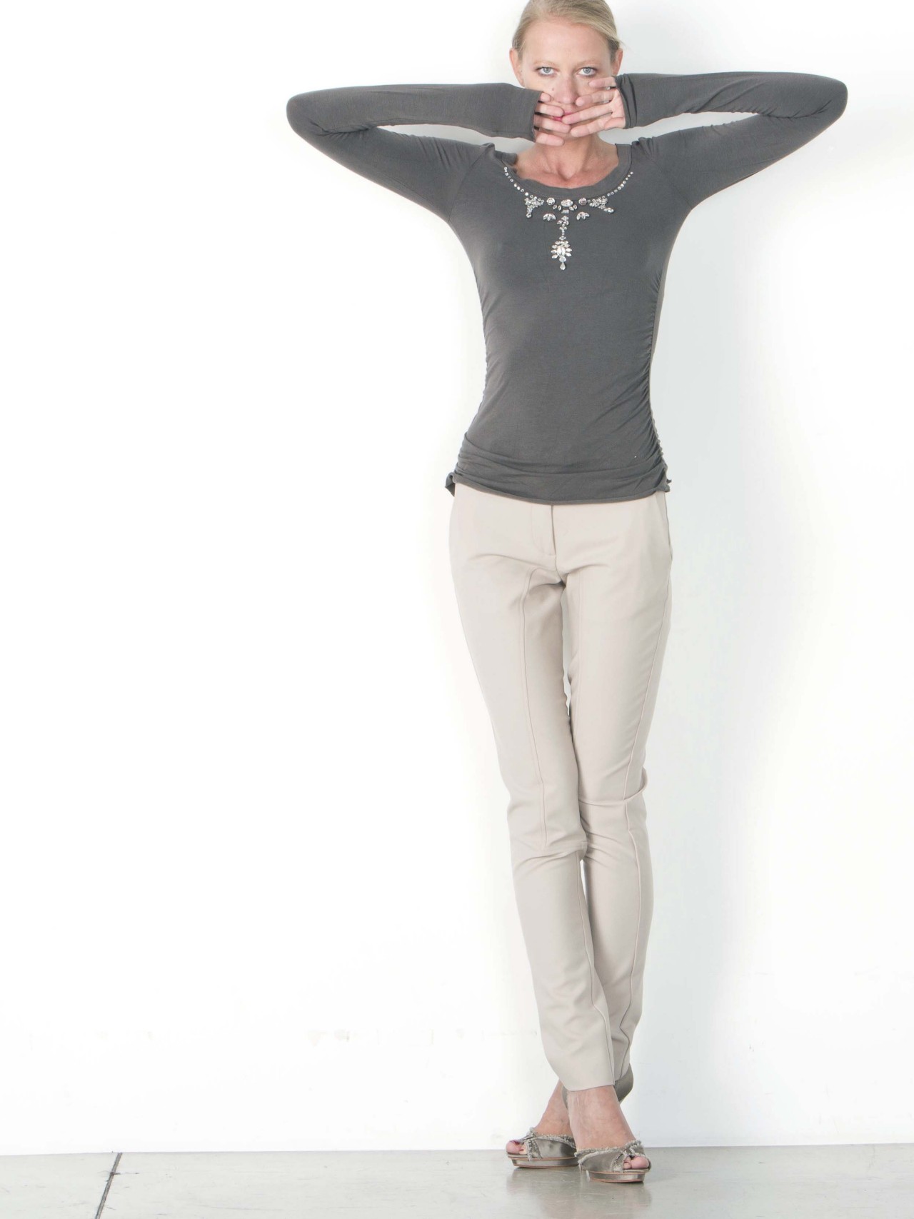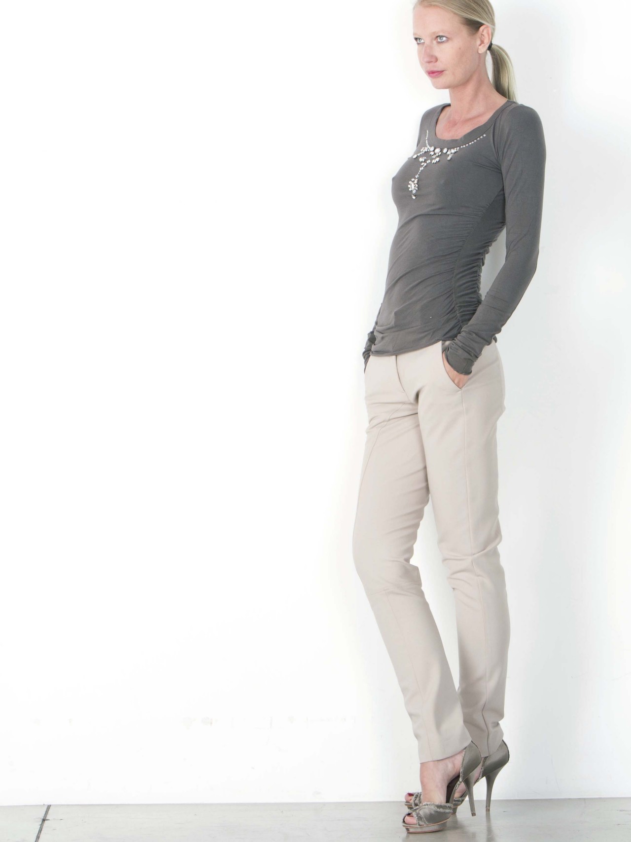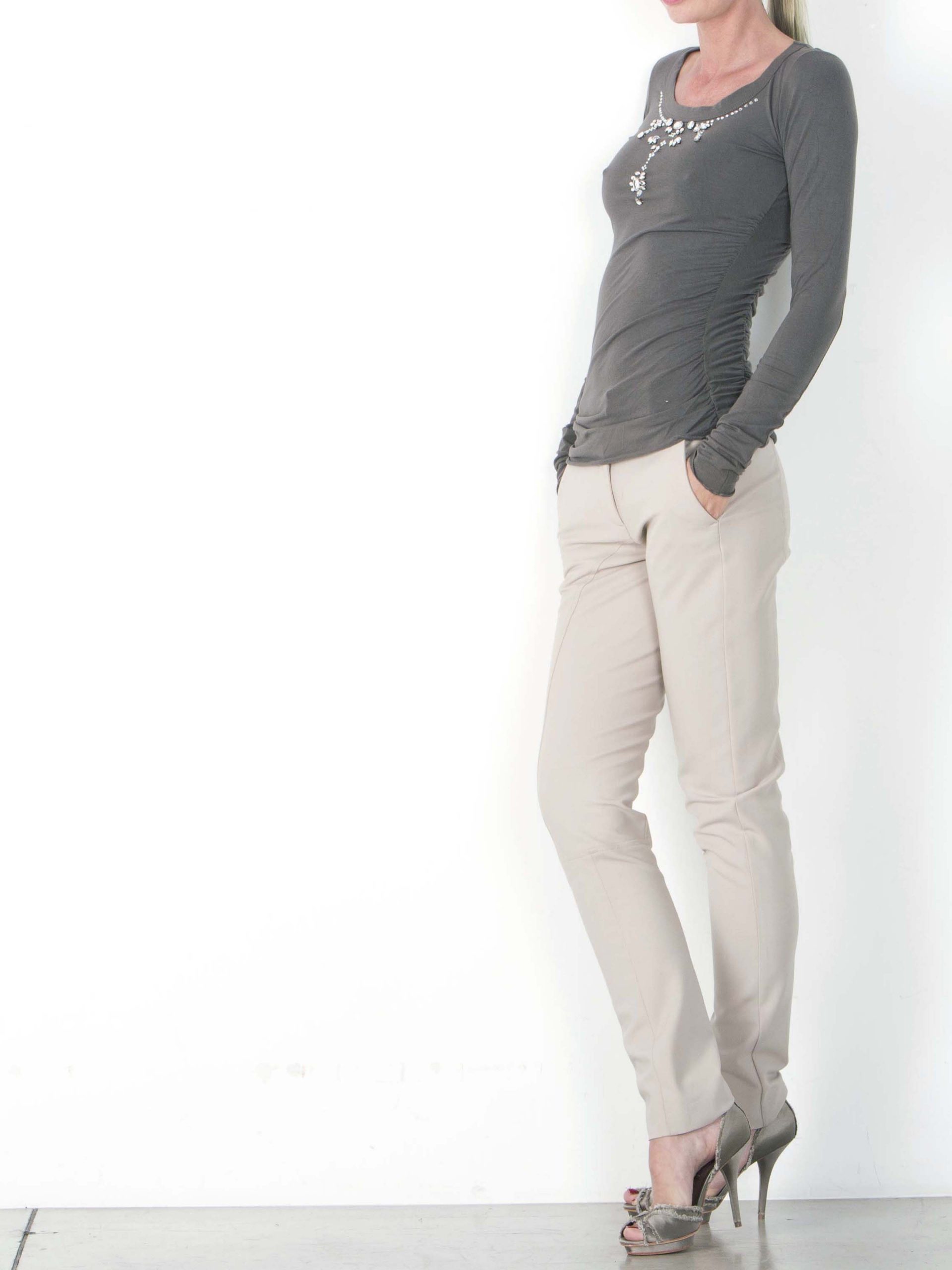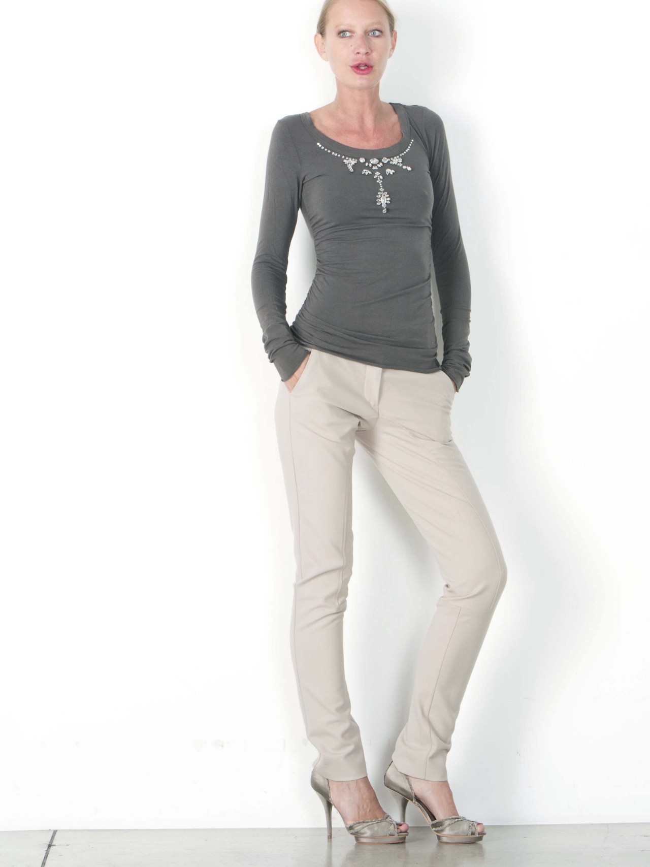 MAGLIA GRIGIO SWAROVSKI TRUST TOILETTE, MODELLO CON SCOLLO TONDO E RICAMO SWAROVSKI E APPLICAZIONE DI SETA A TAGLIO VIVO,  LA LINEA E’ SLIM E FIT, UN PASS DI SICURO SUCCESSO PER GLI OUT FIT PIU’ GLAM, COOL